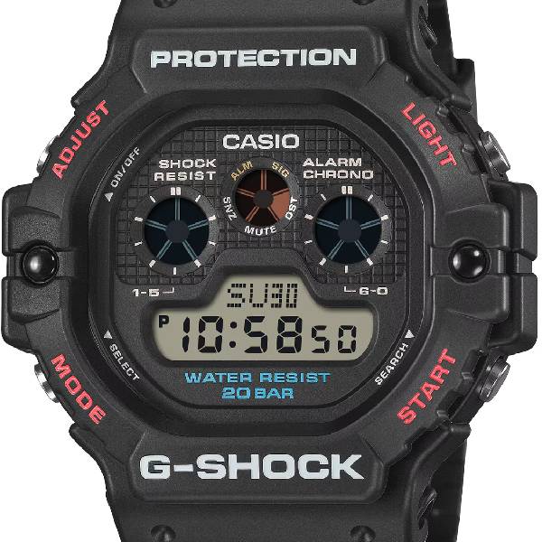 Constructed from bio-based resin and strengthened with Carbon Core Guard technology, the DW-5900C delivers exceptional durability with a more sustainable approach. Its shock-resistant, vibration-resistant, and centrifugal force-resistant structure ensures dependable performance wherever your day takes you. With 200 m water resistance, dual time, world time, alarm, and daily timing functions, this is a tough, practical watch designed for both adventure and everyday wear.