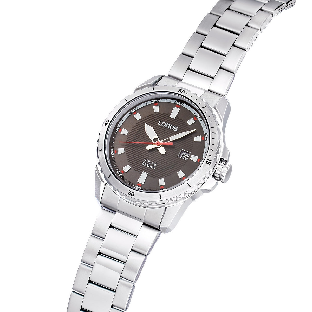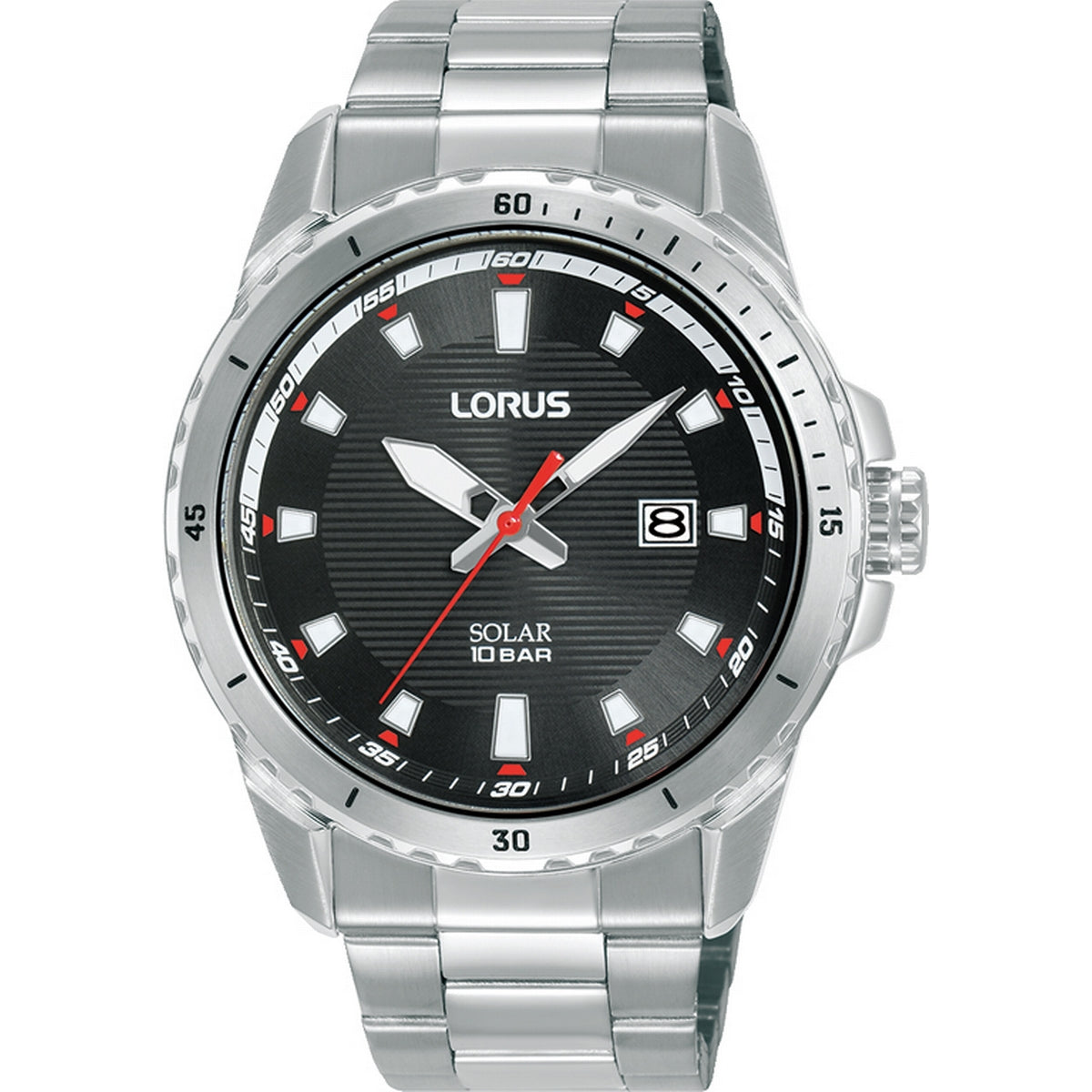 LORUS SOLAR GENTS STAINLESS STEEL BLACK DIAL BRACELET WATCH