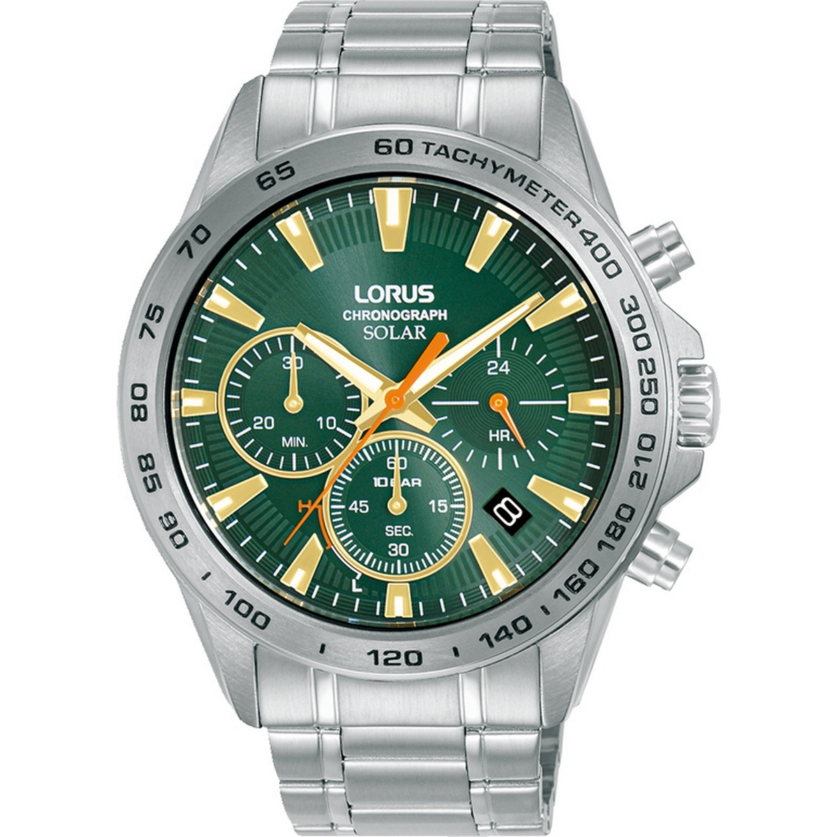 lorus solar chronograph gents stainless steel green dial bracelet watch