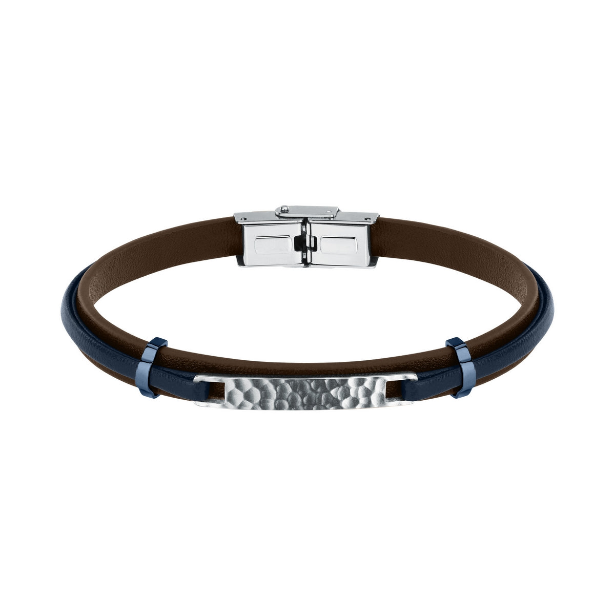 sector jewels bandy stainless steel bracelet with brown pu leather strap and tag with hammer finishing